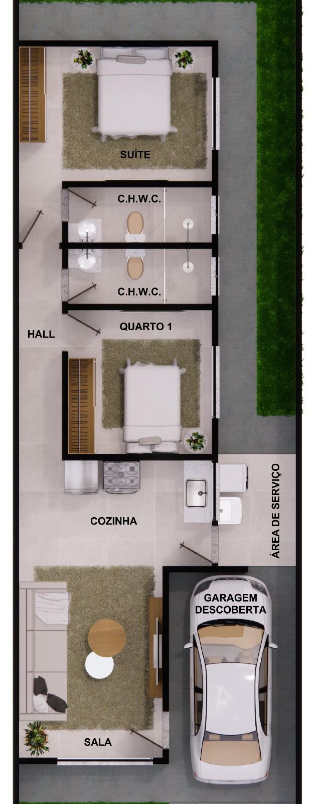 COM 2/4, SENDO 01 SUITE, SALA, COZINHA, BANHEIRO SOCIAL E ÁREA DE SERVIÇO COBERTA