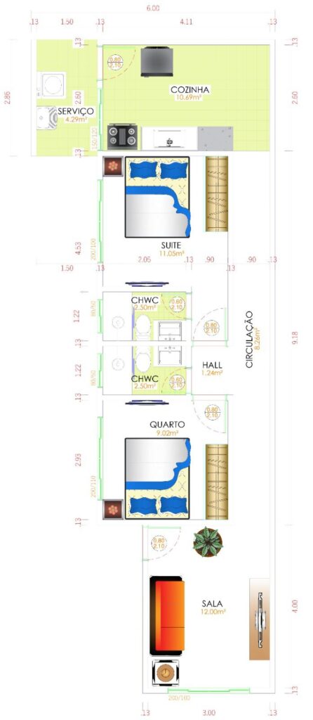 - Tamanho do lote: 180 m2